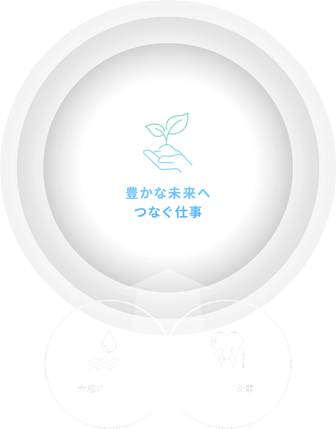 土と水グループは、大地に残る仕事、人々の心に残る仕事、そして、豊かな未来へつないでいく仕事に実践的に関わっていきます。
