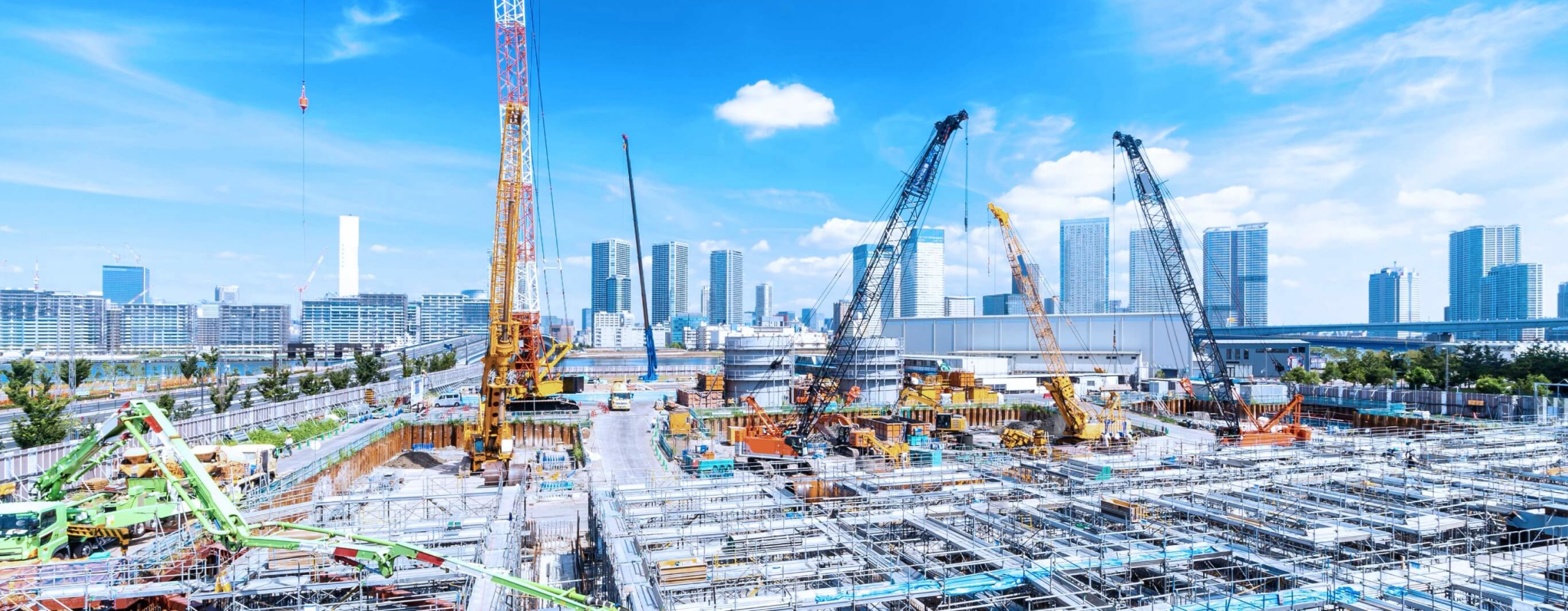 以後、「土と水」に関わる、地盤改良の専門会社、機械メーカーと連携し、地盤改良に特化した機械・プラントを開発し、機械の販売・レンタルによってビックプロジェクトならびに社会資本整備に参画してまいりました。