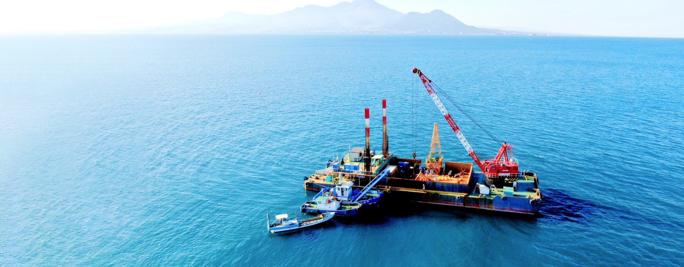 新和ボーリング工業は、来年創業50周年を迎える地質調査ボーリングの専門業者です。事務所は福岡にありますが、北海道から沖縄、遠くは沖ノ鳥島まで日本全国で仕事をしています。海上主体で、スパッド台船を自ら保有し、港湾施設・海上空港・石油備蓄基地・洋上風力等の仕事をしてきました。陸上もダムや原子力発電所等での深堀、大口径掘削等の大型工事にも従事し、それに対応できるような資機材を保有しています。